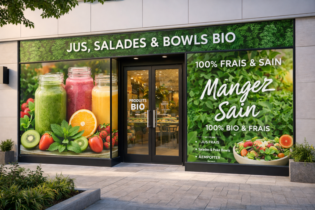 L’habillage intégral de vitrine de magasin personnalisée est la solution pour les enseignes qui veulent marquer les esprits. Votre vitrine devient un support de communication à part entière — image plein format, graphisme de marque, campagne promotionnelle — posée avec une précision au millimètre.